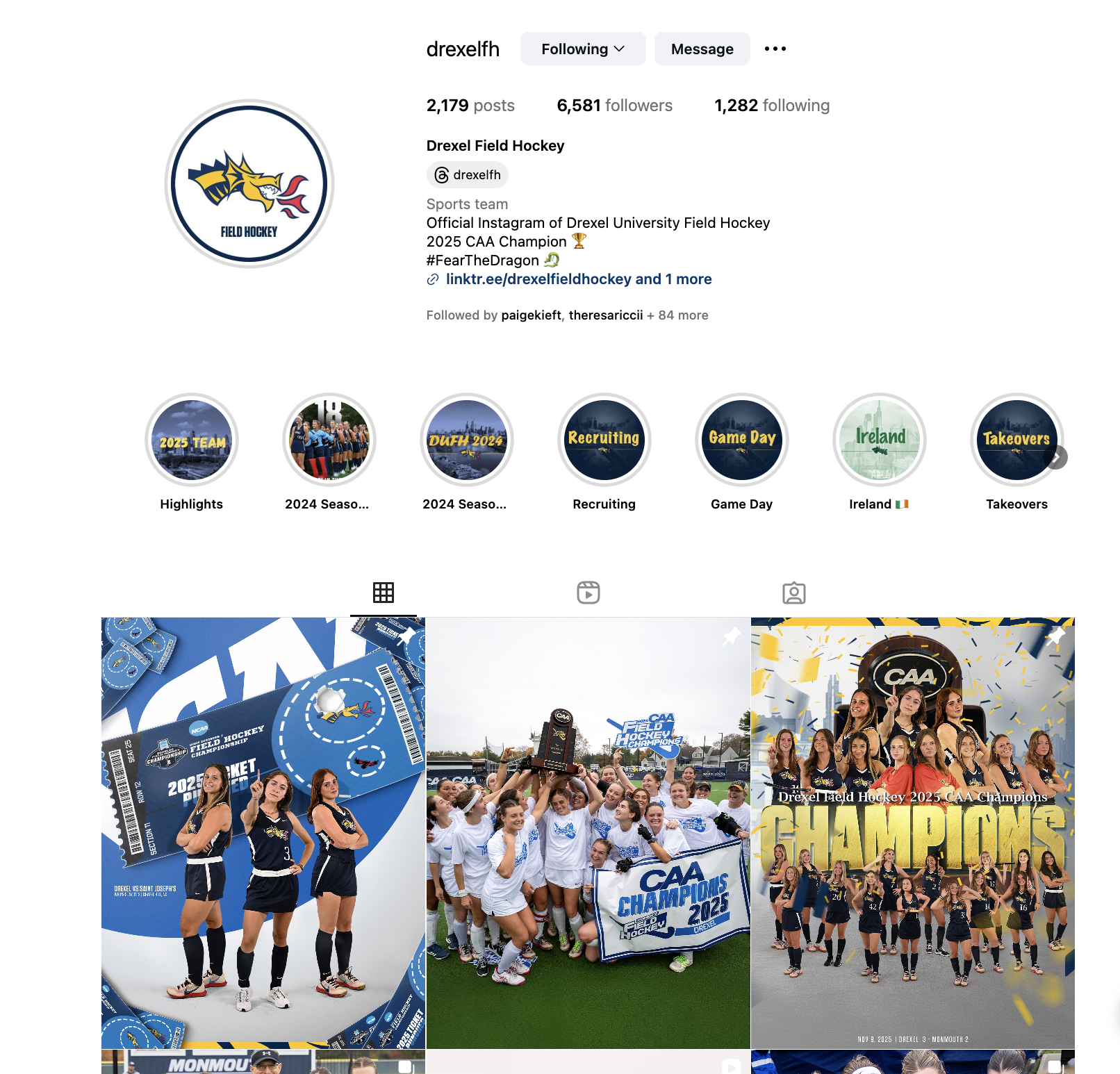 Drexel University Field Hockey Social Media Co-Management June 2025—August 2025